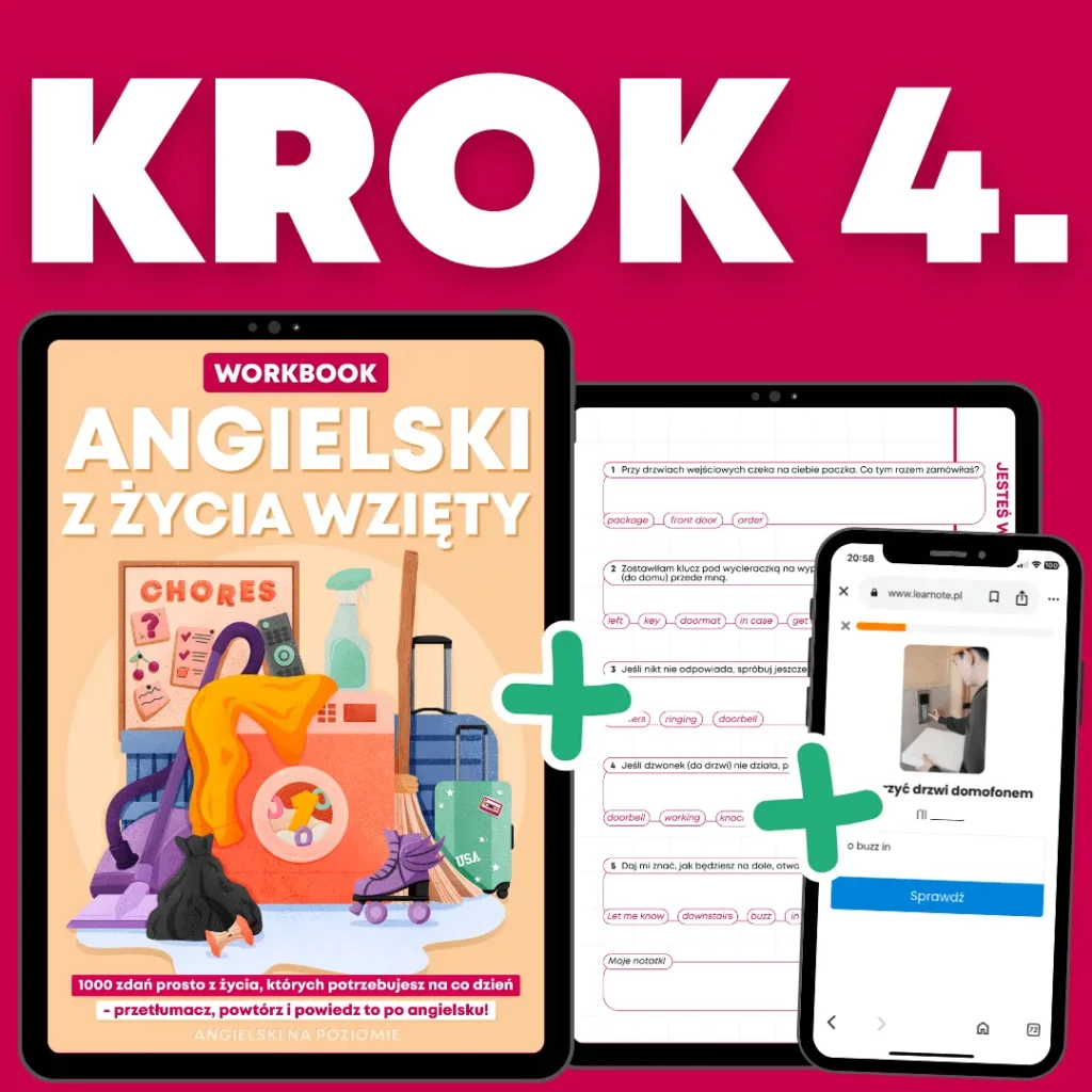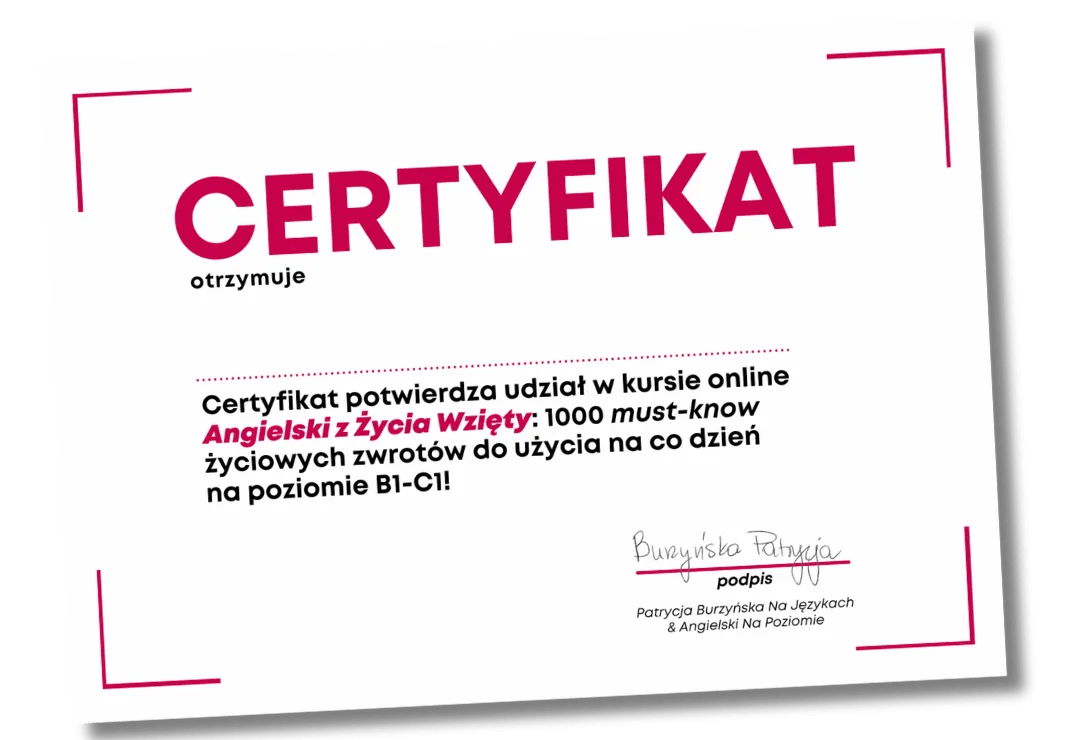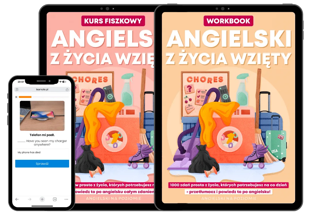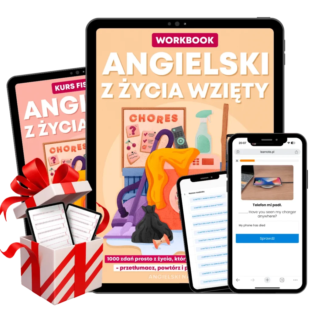 - kurs Angielski z Życia Wzięty w tym: 1000 wyrażeń i zwrotów prosto z życia w całych zdaniach, workbook 1000 życiowych zdań metodą: ‘Przetłumacz, powtórz i powiedz to po angielsku!’ z kluczem rozwiązań 🔑