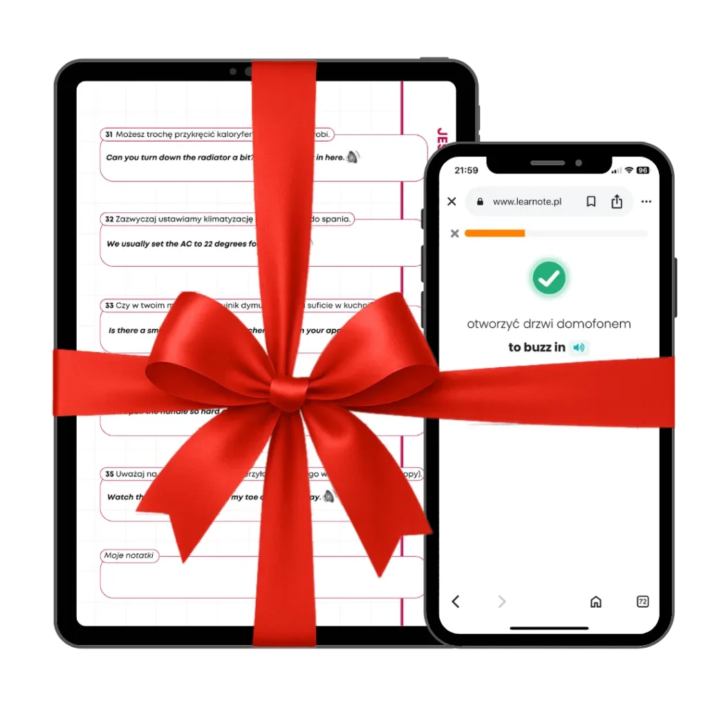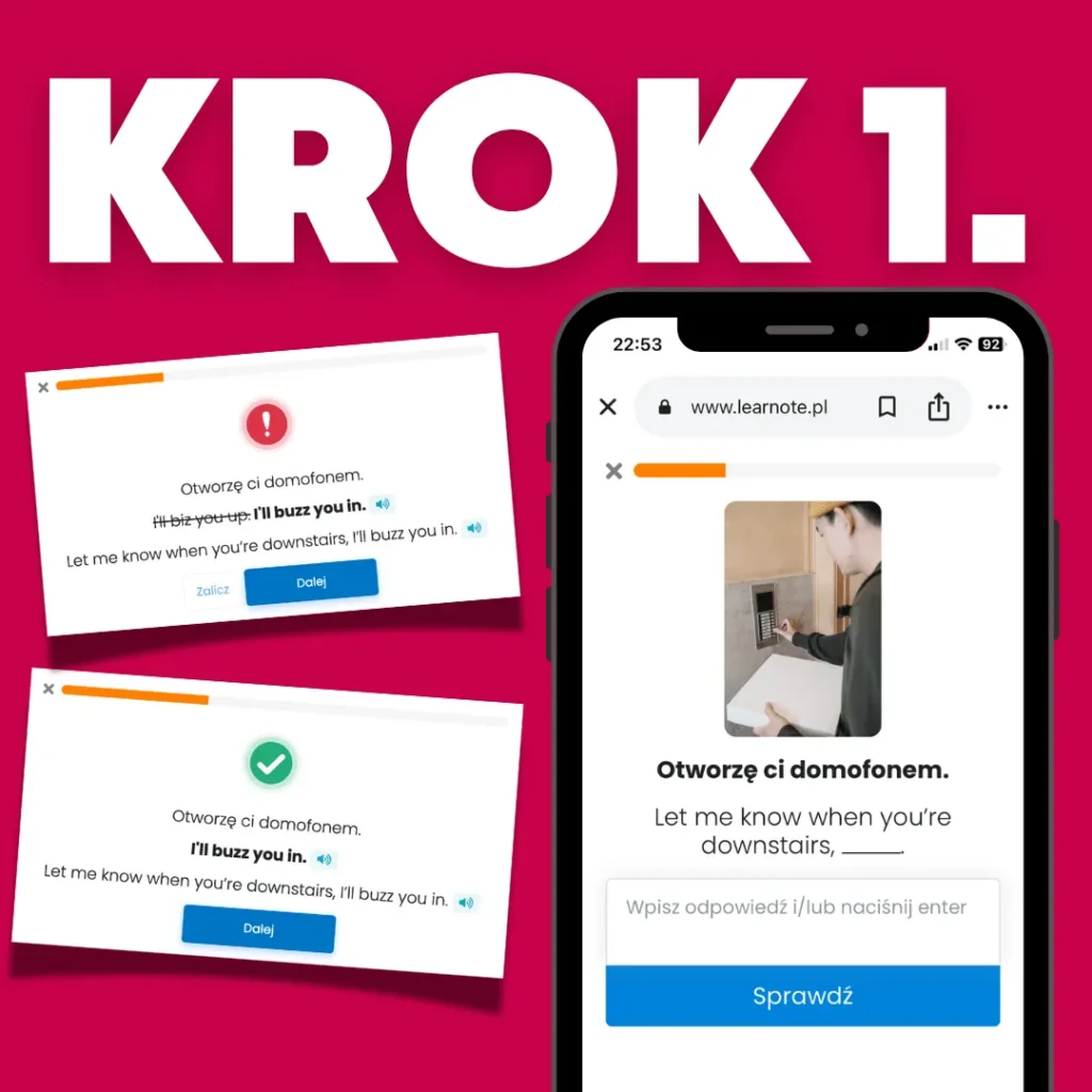 Kurs działa na telefonie, dopasowuje się do Twojego tempa, zawiera system SMART powtórek i materiały do druku.