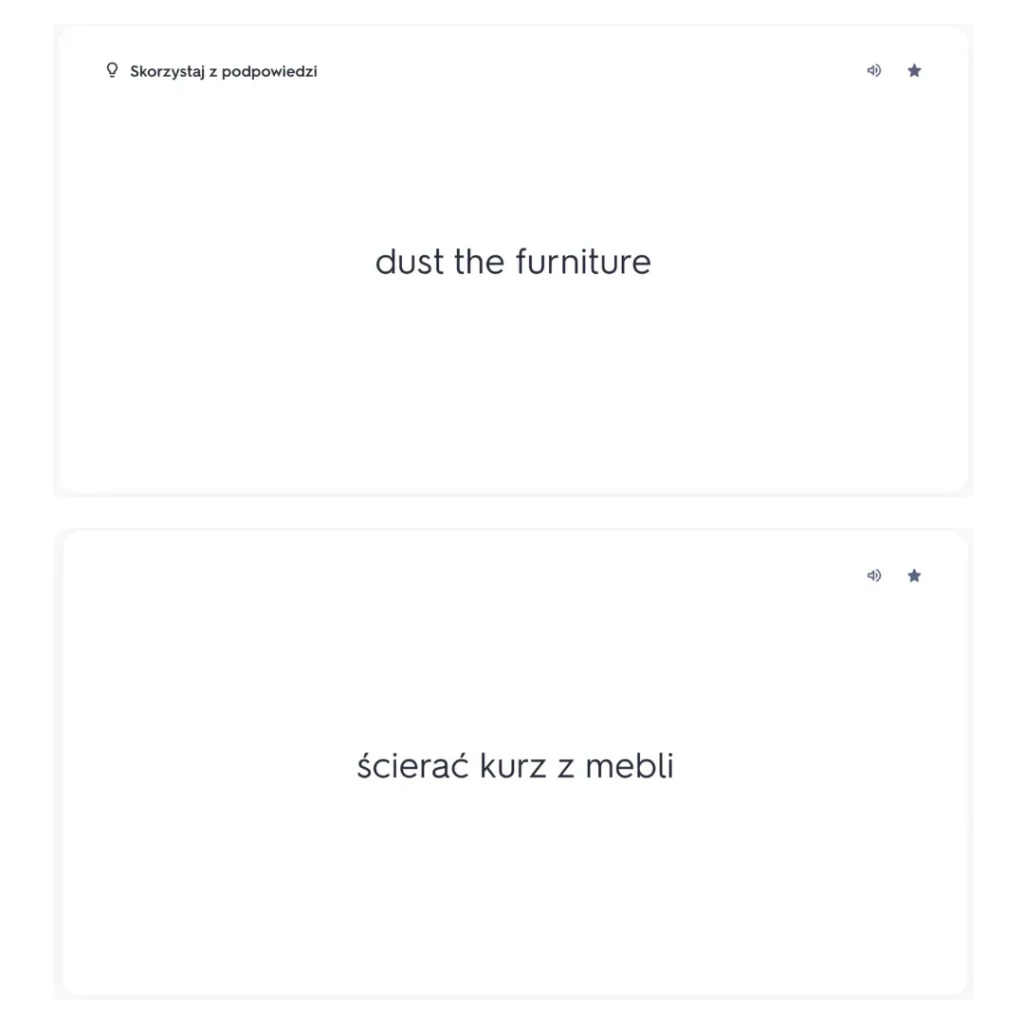Nasze fiszki: ✅ Gotowe całe zdania z kontekstem i naturalnym tłumaczeniem od Native Speakera
