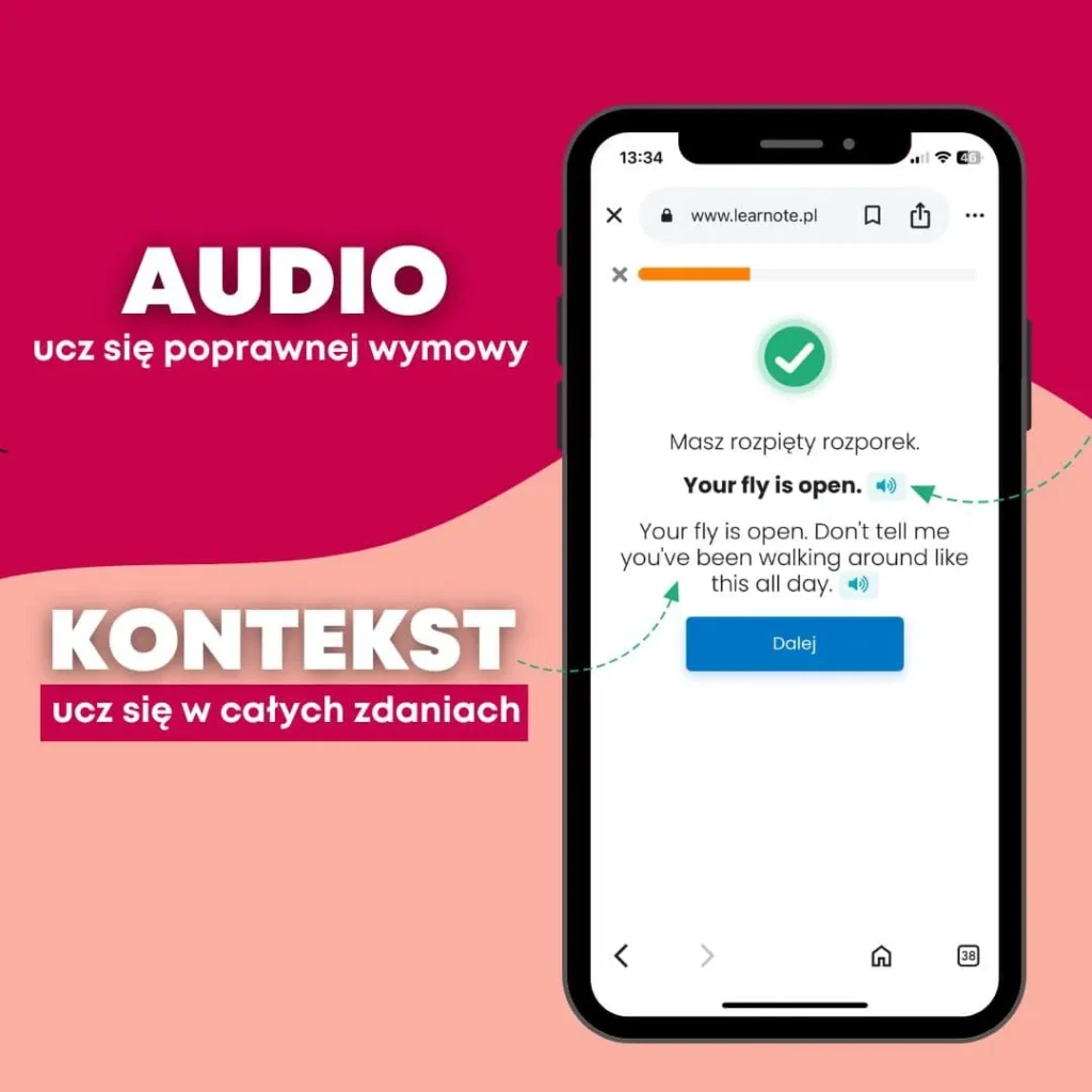 Poznawaj nowe zwroty od razu w całych zdaniach i z wymową!